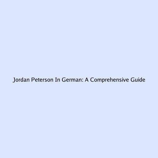 Jordan Peterson In German: A Comprehensive Guide